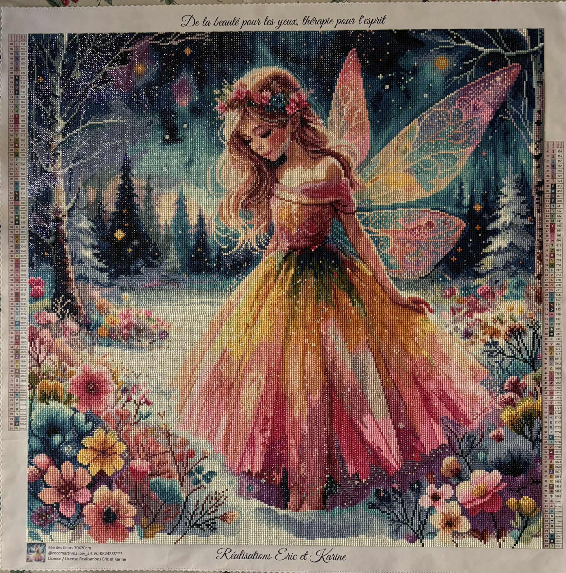 Toile de peinture à diamant, le derrière du canevas est en lin délimité par une couture pour empêcher l'effritement.