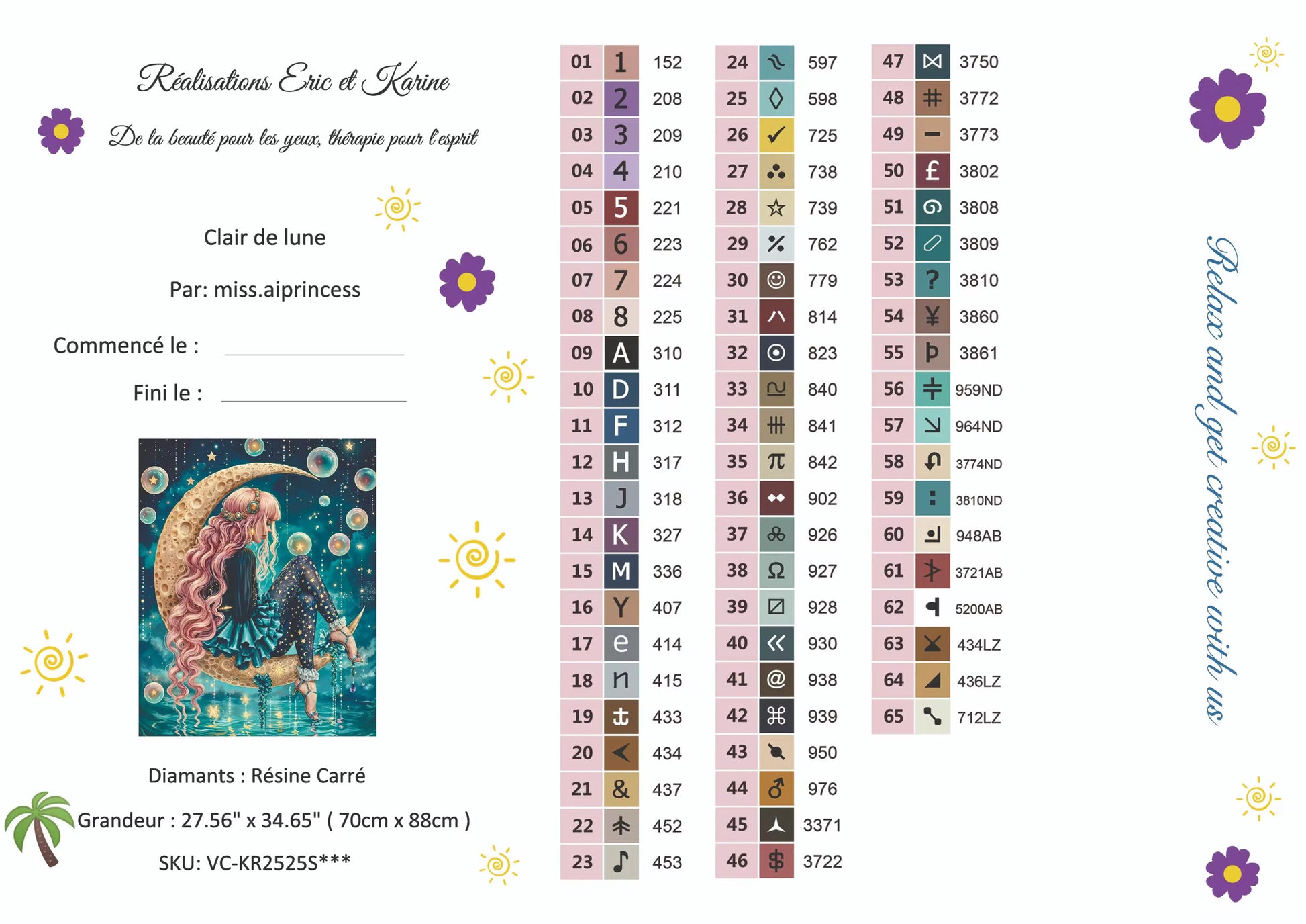 Toile premium Diamants en résine carré 65 couleurs dont 3 AB, 3 Crystales et 4 Scintillants