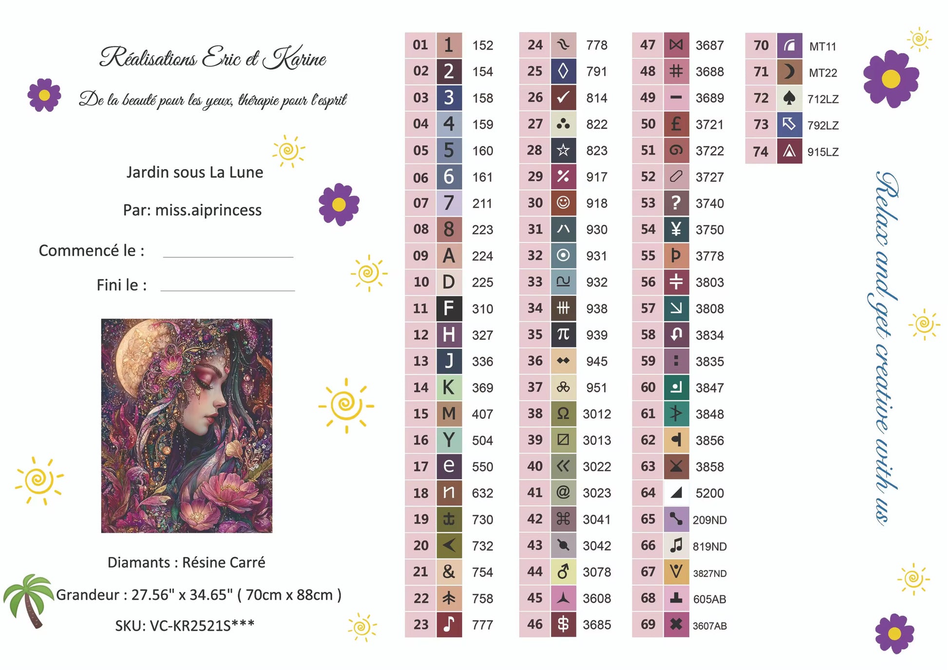 Toile premium Diamants en résine carré 74 couleurs dont 2 AB, 3 Crystales, 3 Scintillants et 2 Métalliques