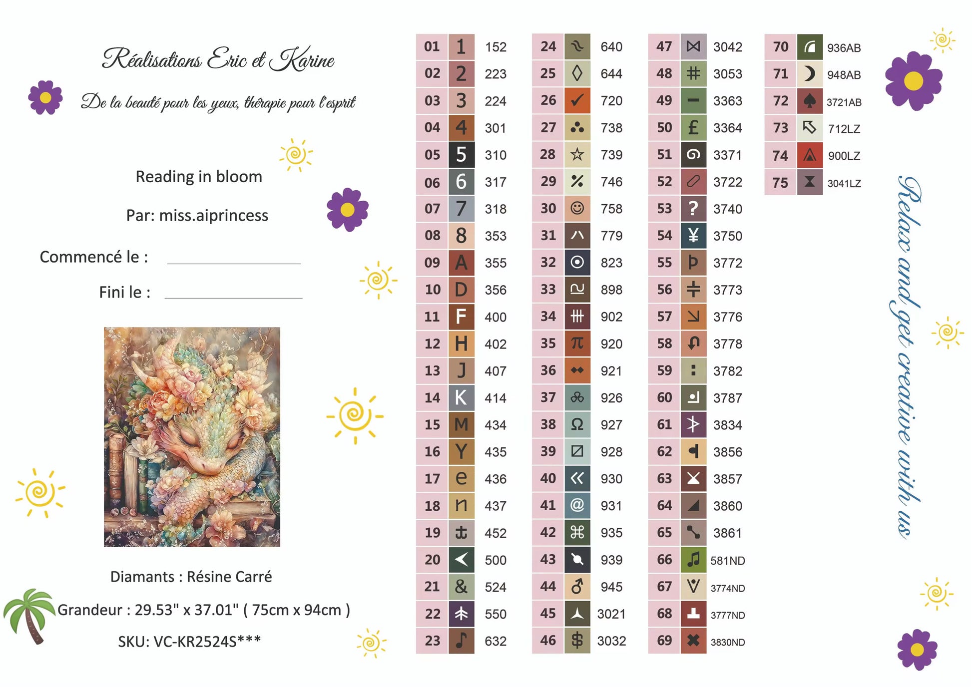 Toile premium Diamants en résine carré 75 couleurs dont 3 AB, 3 Crystales et 4 Scintillants