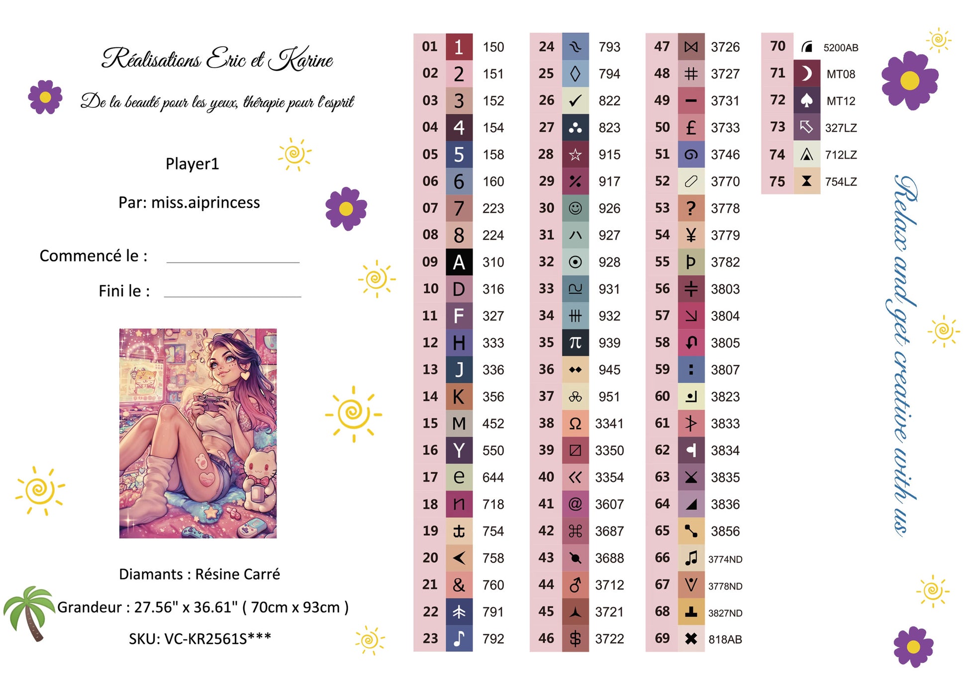 Toile premium Diamants en résine carré 75 couleurs incluant: