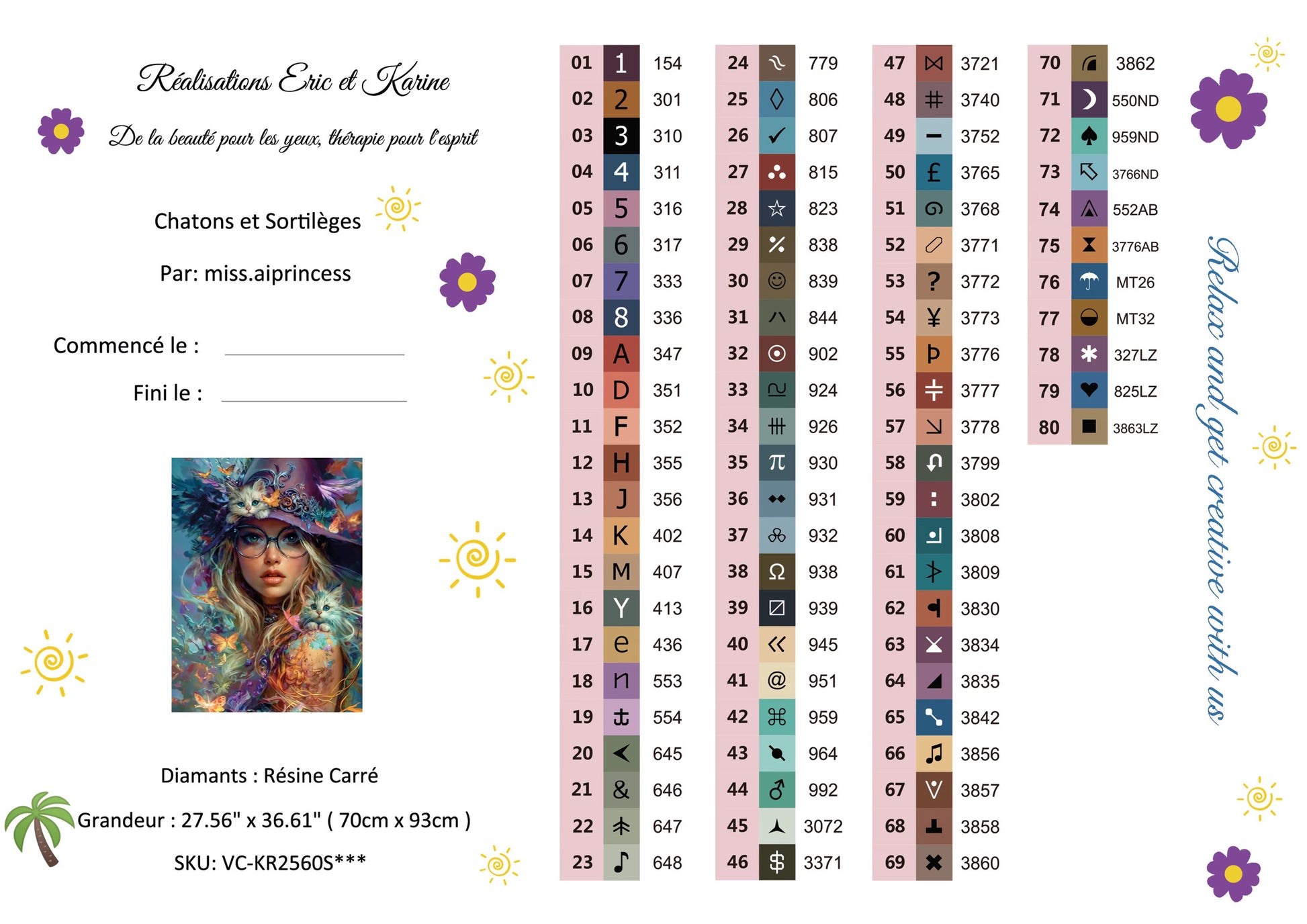 Toile premium Diamants en résine carré 80 couleurs incluant: