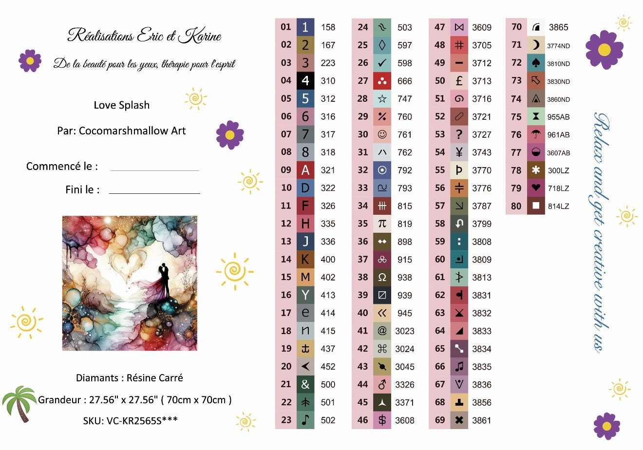 Toile premium Diamants en résine carré 80 couleurs incluant: