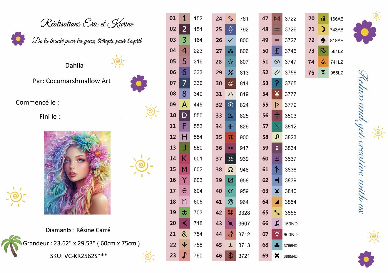 Toile premium Diamants en résine carré 75 couleurs incluant: