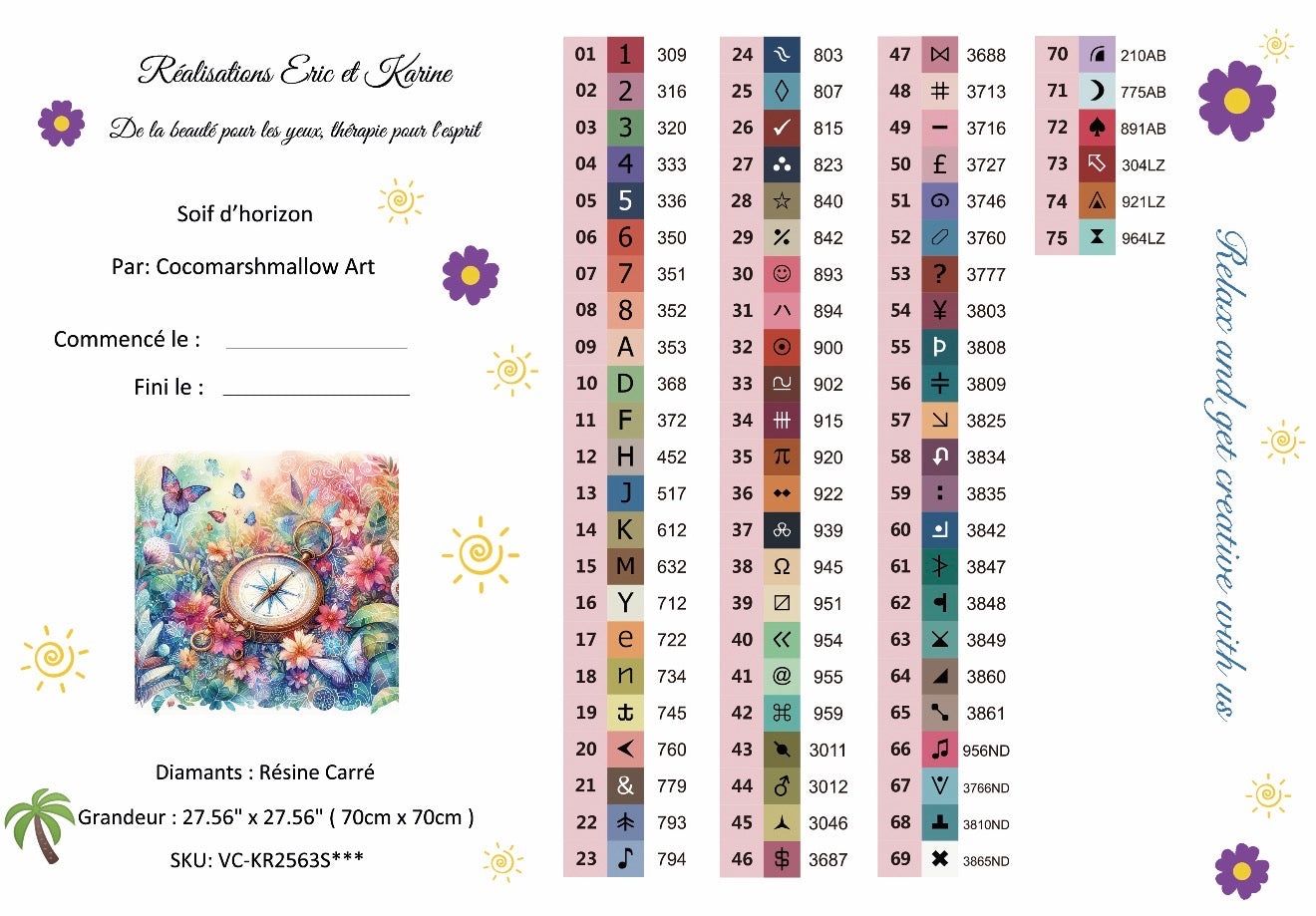 Toile premium Diamants en résine carré 75 couleurs incluant: